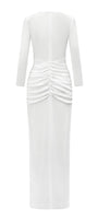 يتميز هذا الفستان بتصميم عصري أنيق بأكمام طويلة وفتحات جانبية وتصميم يصل إلى الأرض. مصنوع من قماش جيرسي عالي الجودة، يوفر الراحة والأناقة. مثالي لأي مناسبة رسمية. ينضح هذا الفستان بالأناقة والرقي.