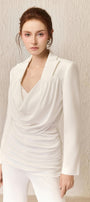عززي أناقة خزانتكِ مع هذا التوب، الذي يتميز بتصميم فيونكة كبيرة ملفتة تُضفي لمسةً راقية. مصنوع من مزيج حرير فاخر، يوفر هذا التوب ملمسًا ناعمًا ومريحًا، بينما توفر أحزمة الخصر العريضة والأنيقة الدعم والأناقة. مثالي للارتداء مع السراويل ذات الخصر العالي، حيث يجمع بين التصميم الجريء والحرفية الراقية لإطلالة أنيقة واحترافية.