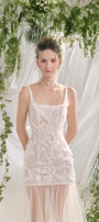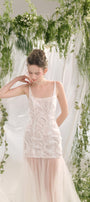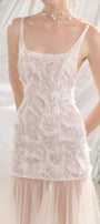 يتميز هذا الفستان بتطريزات رقيقة من اللؤلؤ والزهور تُضفي عليه أناقة راقية. تنورته الشفافة تُضفي عليه لمسةً من الأناقة والرقي، بينما تُضفي تفاصيل الدانتيل الرقيقة لمسةً من الأناقة على ملمسه. مثالي للمناسبات الرسمية، يجمع هذا الفستان بين الحرفية المتقنة وقصة حورية البحر الجذابة لإطلالة أنيقة واحترافية.