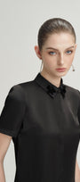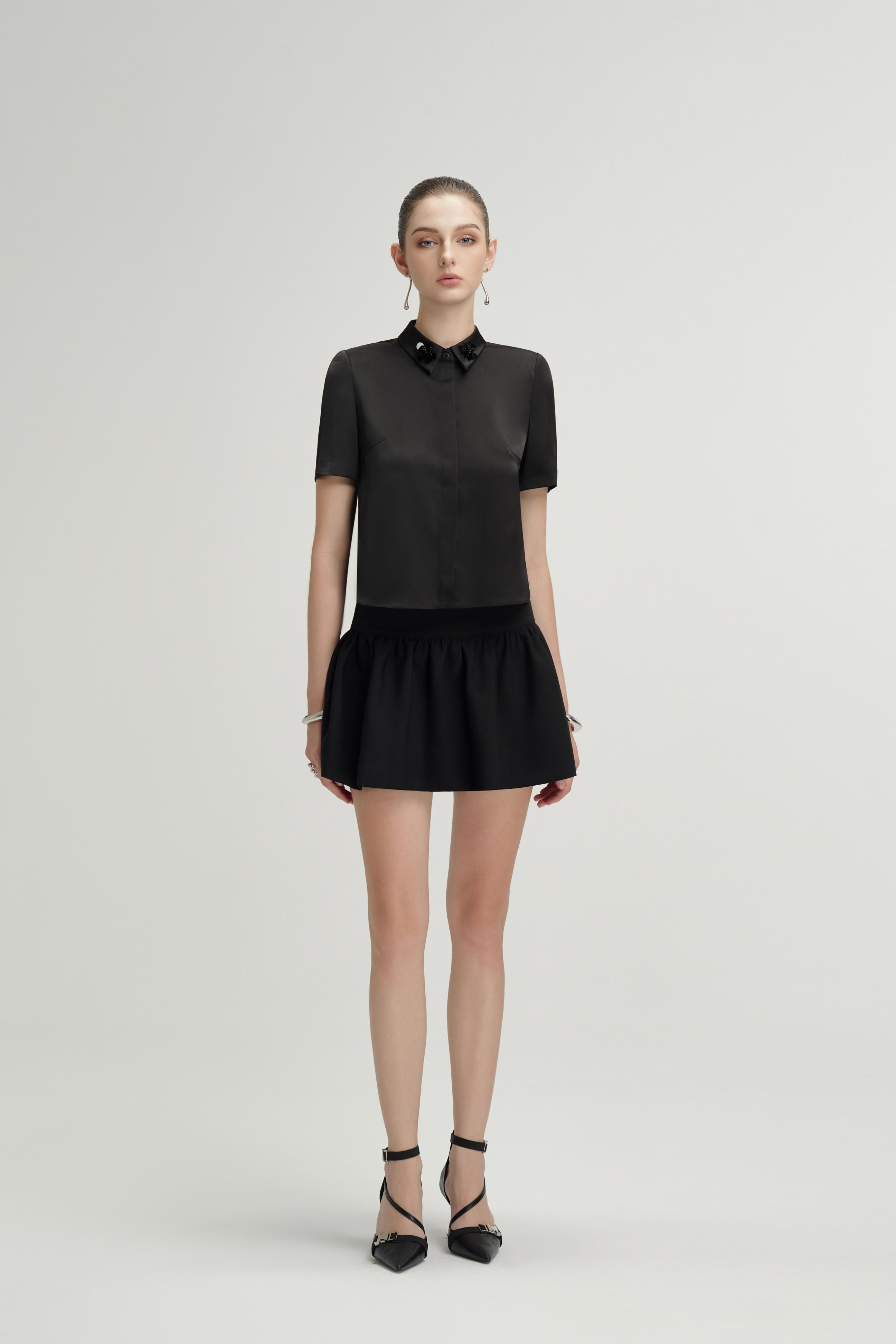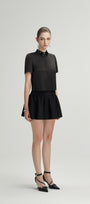 عززي أناقة خزانتكِ مع هذا التوب، الذي يتميز بتصميم فيونكة كبيرة ملفتة تُضفي لمسةً راقية. مصنوع من مزيج حرير فاخر، يوفر هذا التوب ملمسًا ناعمًا ومريحًا، بينما توفر أحزمة الخصر العريضة والأنيقة الدعم والأناقة. مثالي للارتداء مع السراويل ذات الخصر العالي، حيث يجمع بين التصميم الجريء والحرفية الراقية لإطلالة أنيقة واحترافية.