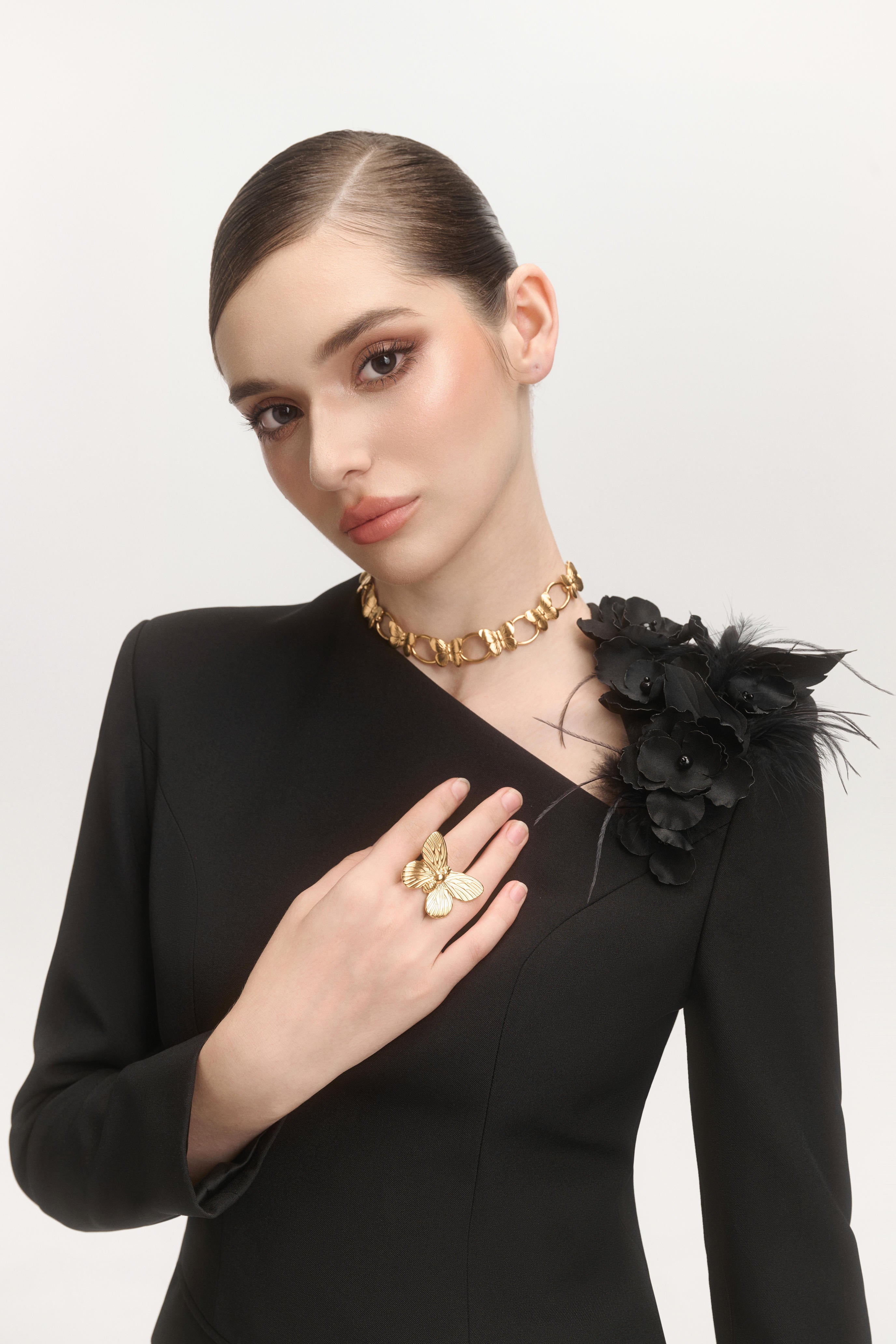 عززي أناقة خزانتكِ مع هذا التوب، الذي يتميز بتصميم فيونكة كبيرة ملفتة تُضفي لمسةً راقية. مصنوع من مزيج حرير فاخر، يوفر هذا التوب ملمسًا ناعمًا ومريحًا، بينما توفر أحزمة الخصر العريضة والأنيقة الدعم والأناقة. مثالي للارتداء مع السراويل ذات الخصر العالي، حيث يجمع بين التصميم الجريء والحرفية الراقية لإطلالة أنيقة واحترافية.