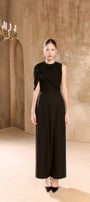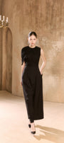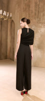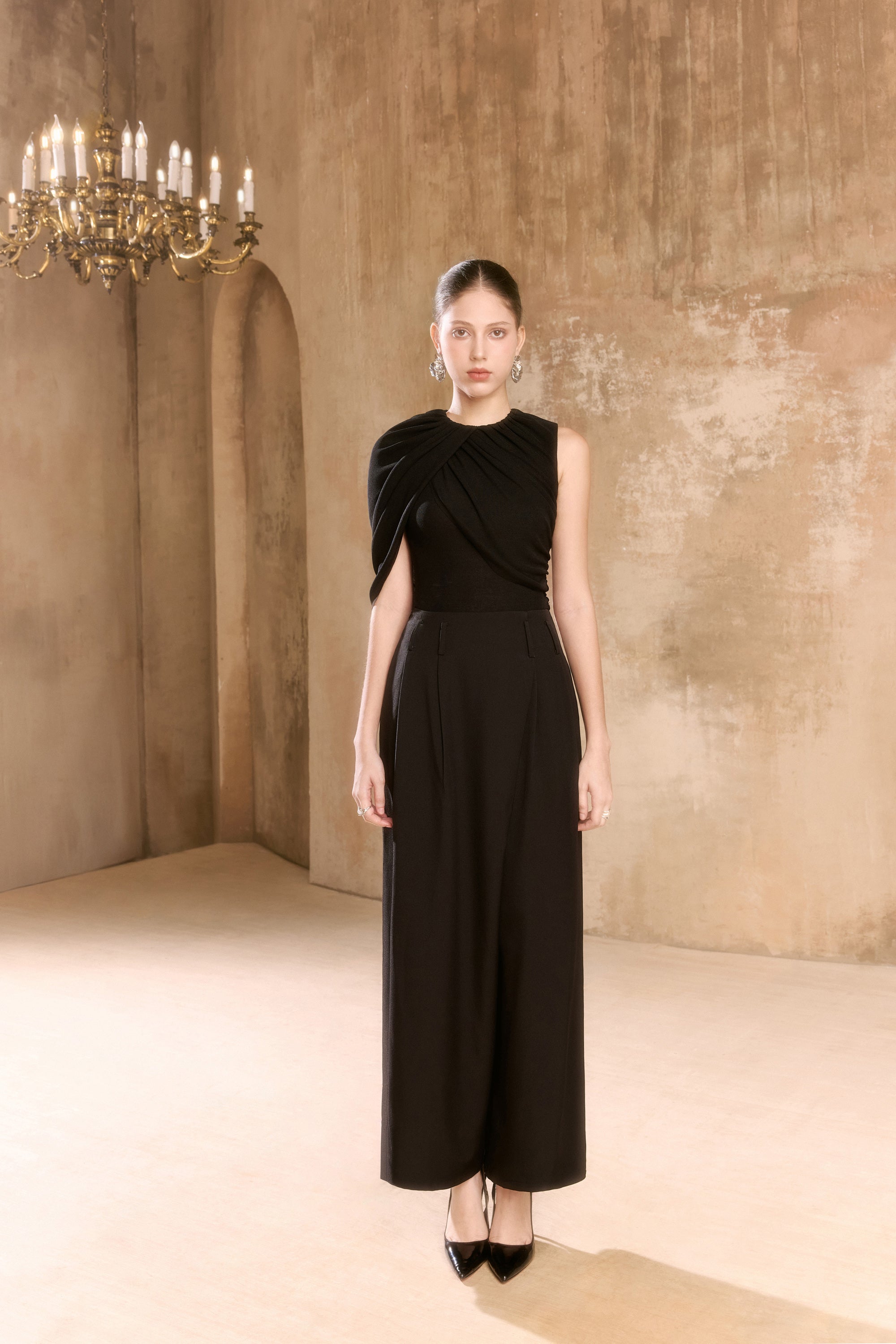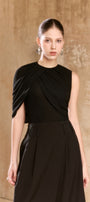 Crop top with circle neck, refined draped details for sophisticated appeal.