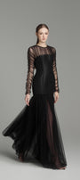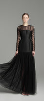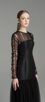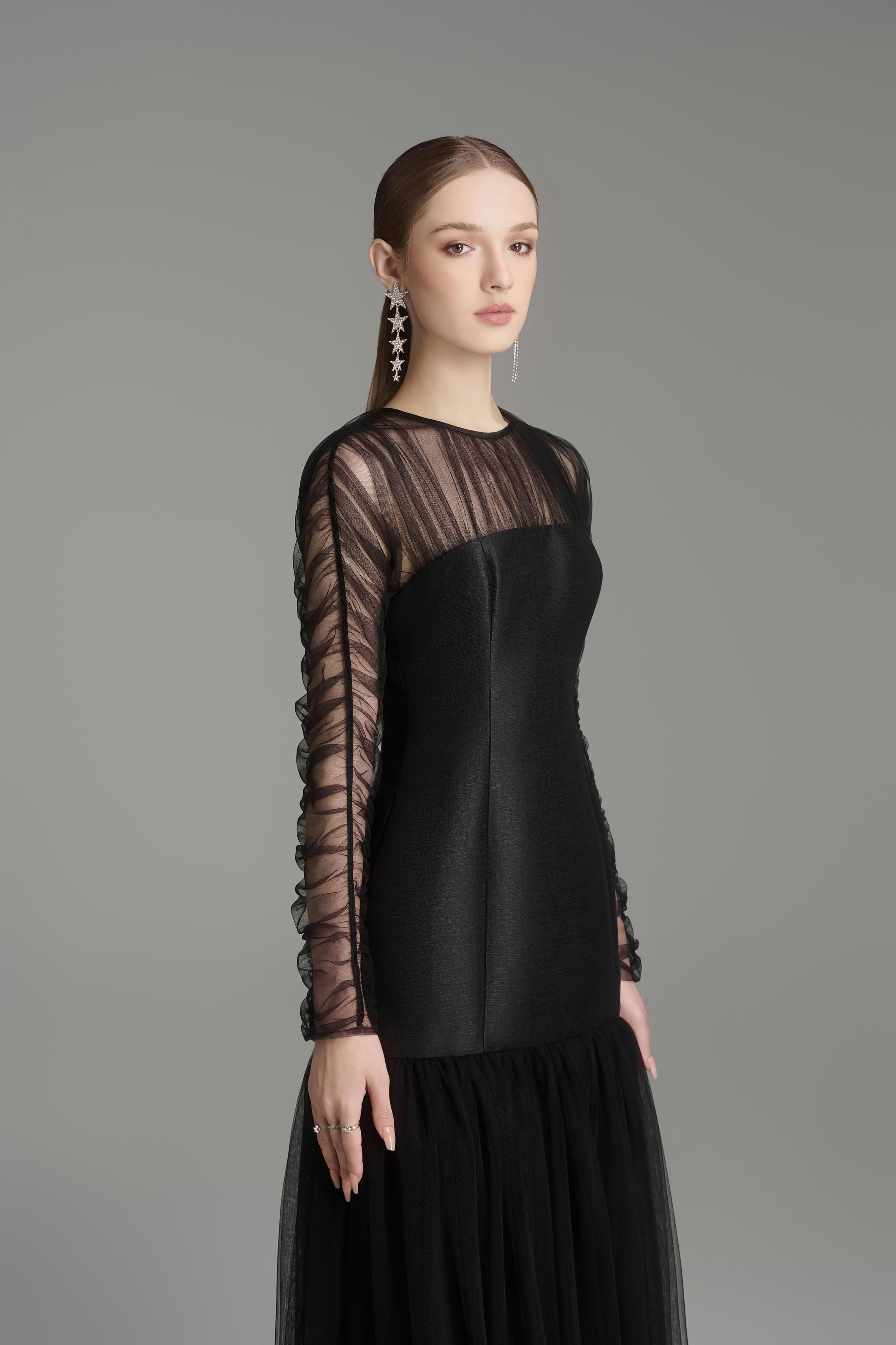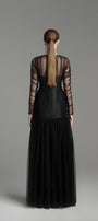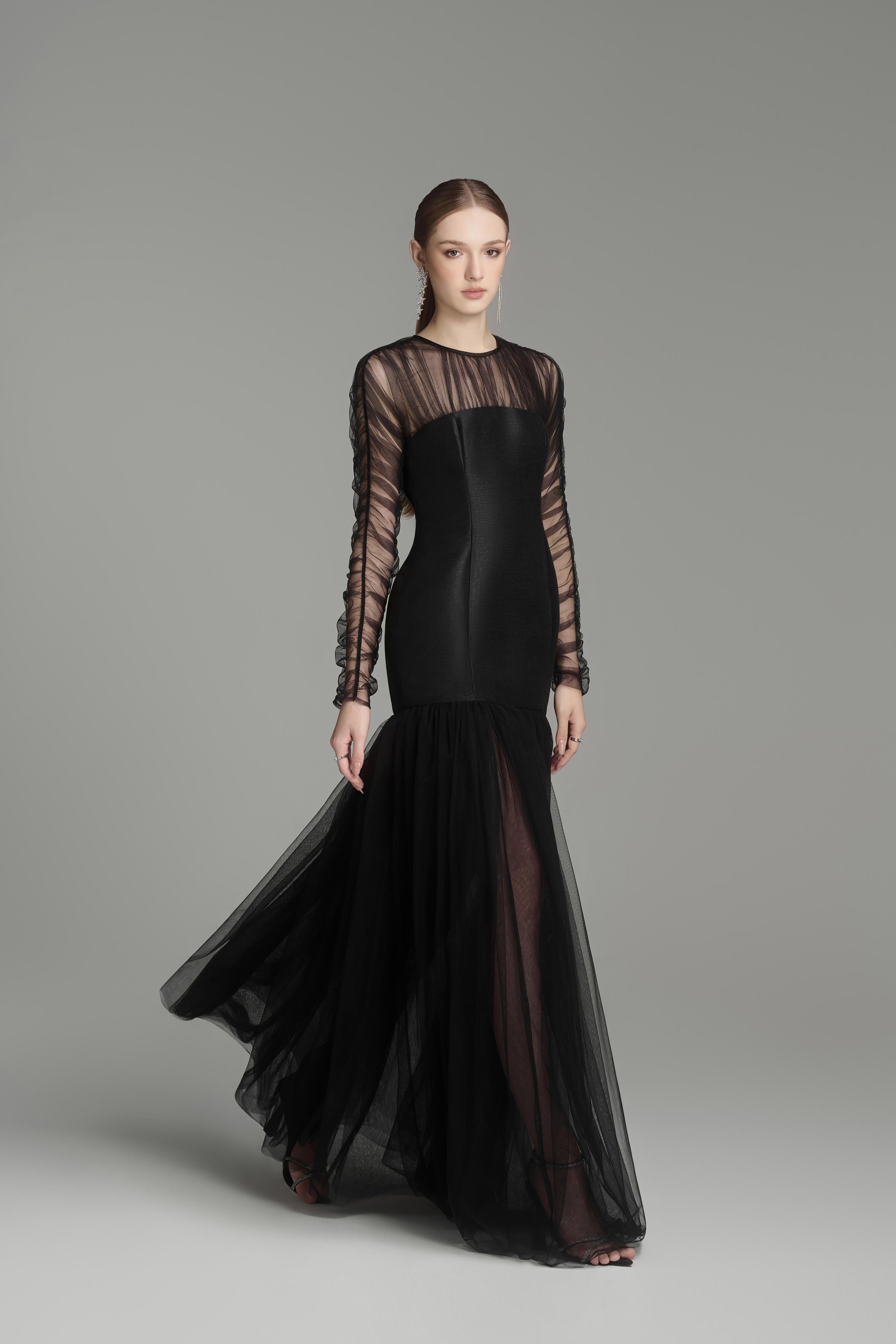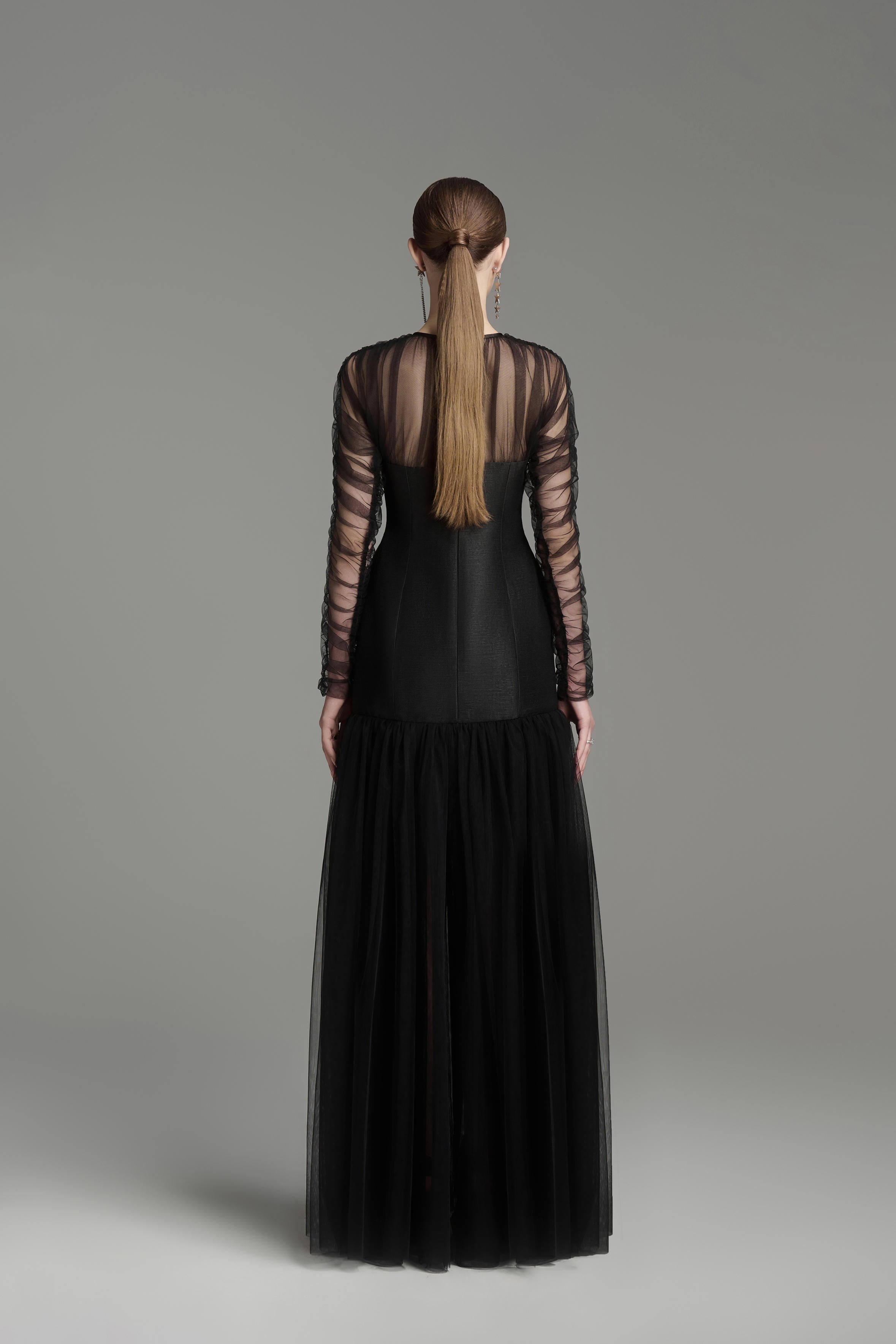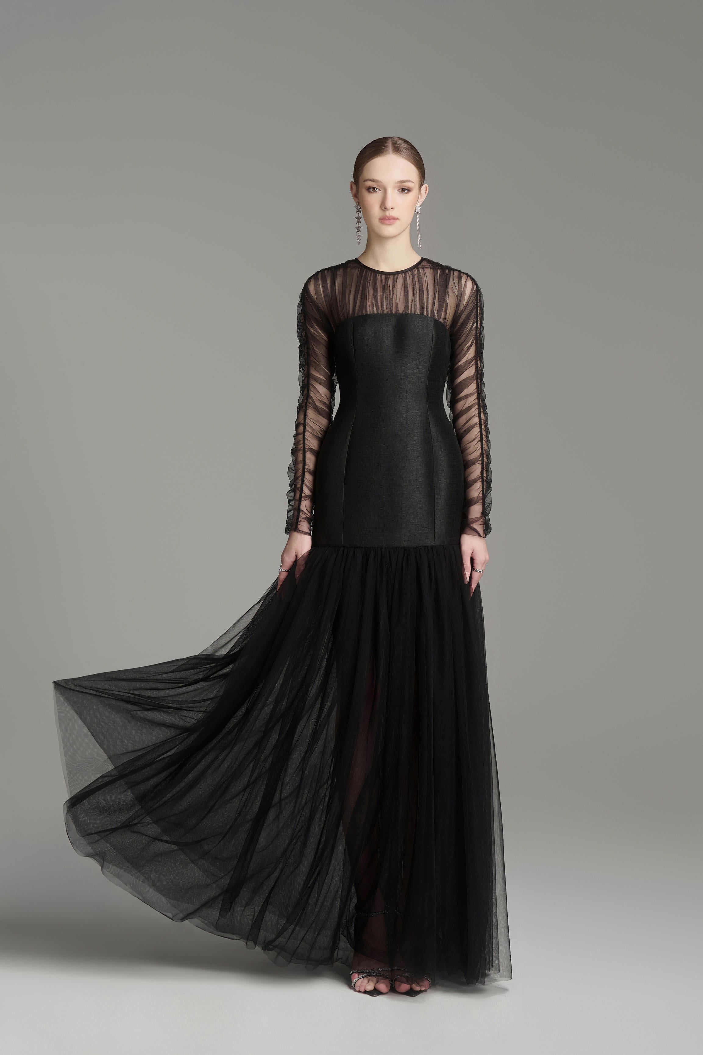 فستان موريلا، مصنوع ببراعة من قماش التول الشفاف والمُجمّع، ينضح بالأناقة والرقي. تصميمه الطويل يُضفي لمسة من الرقي. مثالي لأي مناسبة رسمية. تمتعي بمزيج مثالي من الأناقة والراحة مع هذا الفستان الرائع.