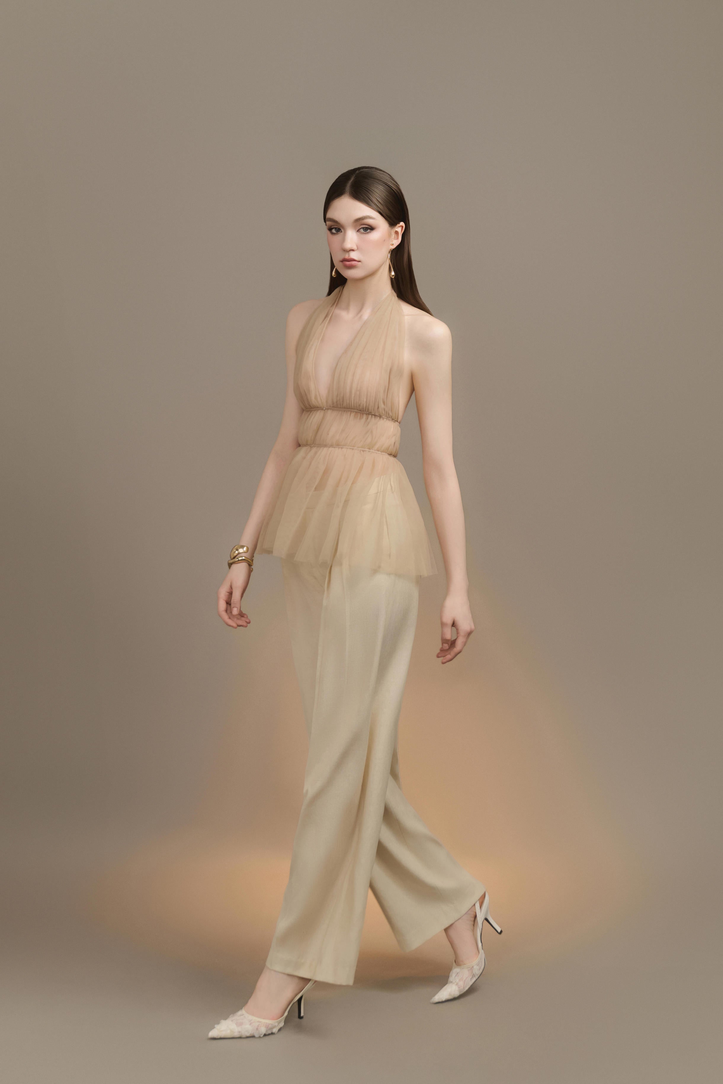 عززي أناقة خزانتكِ مع هذا التوب، الذي يتميز بتصميم فيونكة كبيرة ملفتة تُضفي لمسةً راقية. مصنوع من مزيج حرير فاخر، يوفر هذا التوب ملمسًا ناعمًا ومريحًا، بينما توفر أحزمة الخصر العريضة والأنيقة الدعم والأناقة. مثالي للارتداء مع السراويل ذات الخصر العالي، حيث يجمع بين التصميم الجريء والحرفية الراقية لإطلالة أنيقة واحترافية.