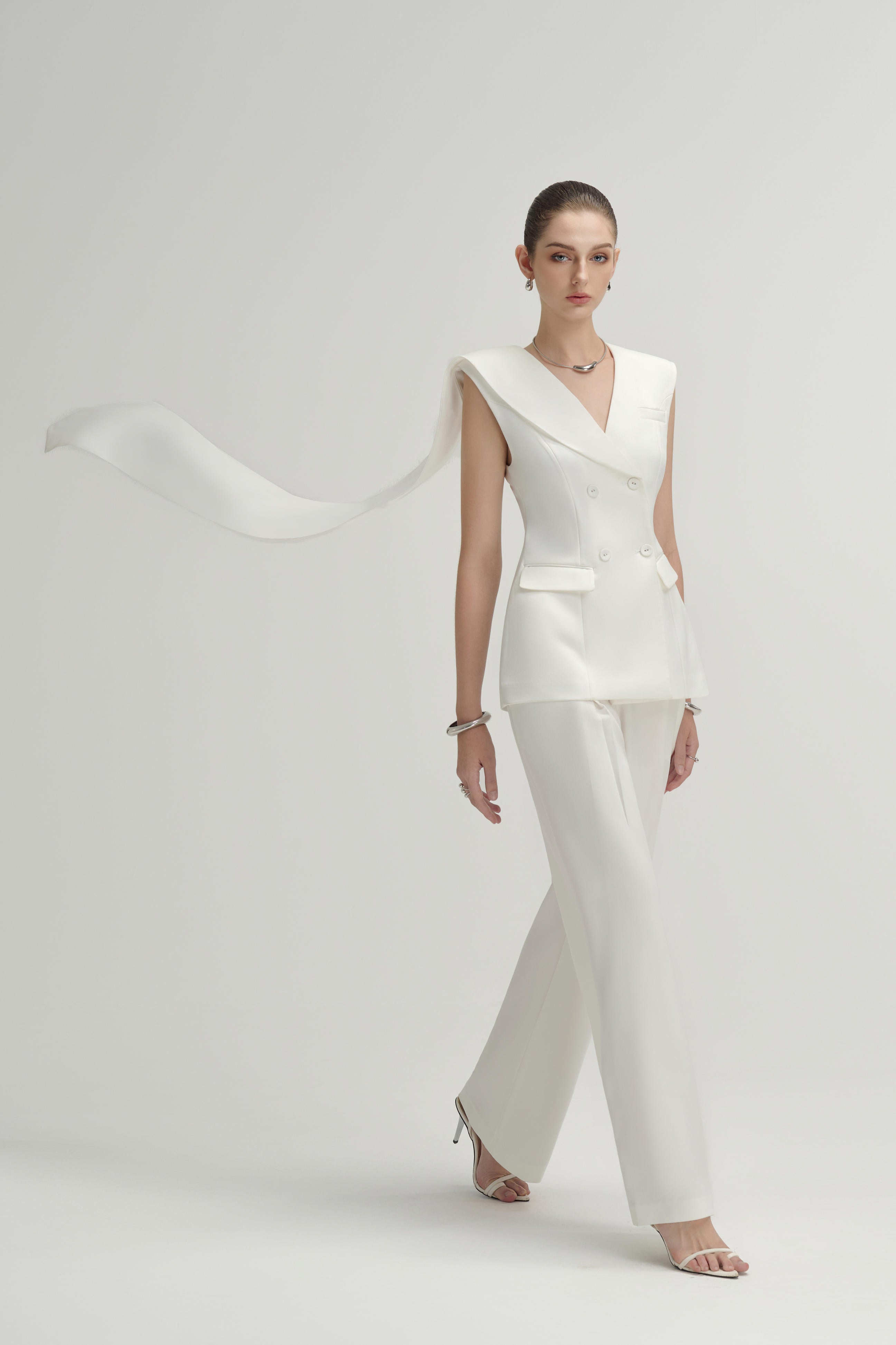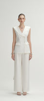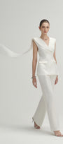 عززي أناقة خزانتكِ مع هذا التوب، الذي يتميز بتصميم فيونكة كبيرة ملفتة تُضفي لمسةً راقية. مصنوع من مزيج حرير فاخر، يوفر هذا التوب ملمسًا ناعمًا ومريحًا، بينما توفر أحزمة الخصر العريضة والأنيقة الدعم والأناقة. مثالي للارتداء مع السراويل ذات الخصر العالي، حيث يجمع بين التصميم الجريء والحرفية الراقية لإطلالة أنيقة واحترافية.