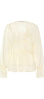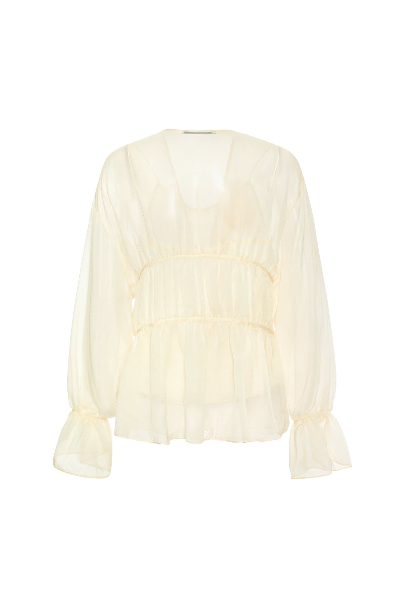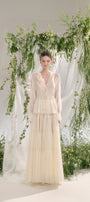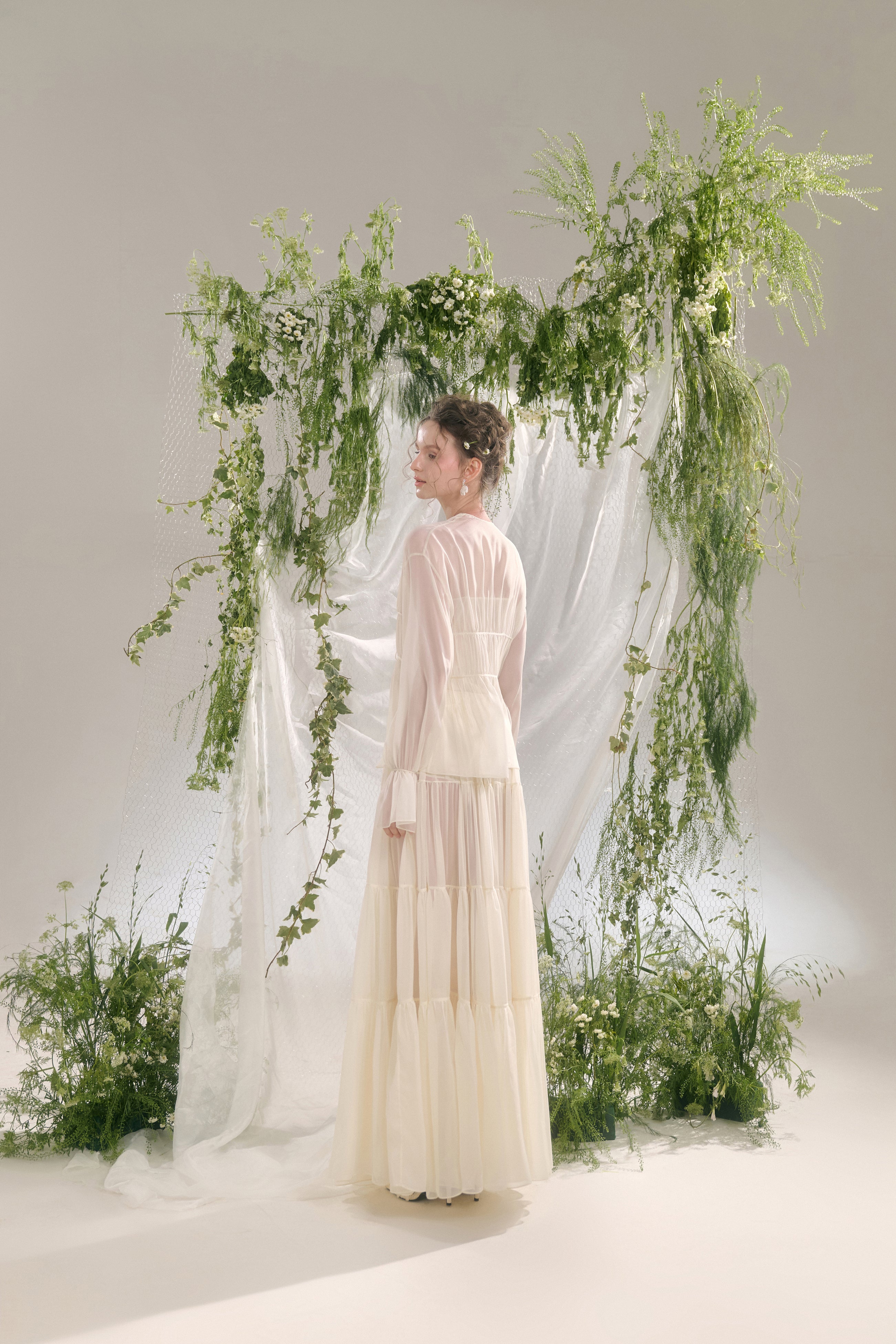 - كشكشة خفيفة أسفل الصدر وعند الخصر، مع تفاصيل ربطة قابلة للتعديل