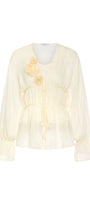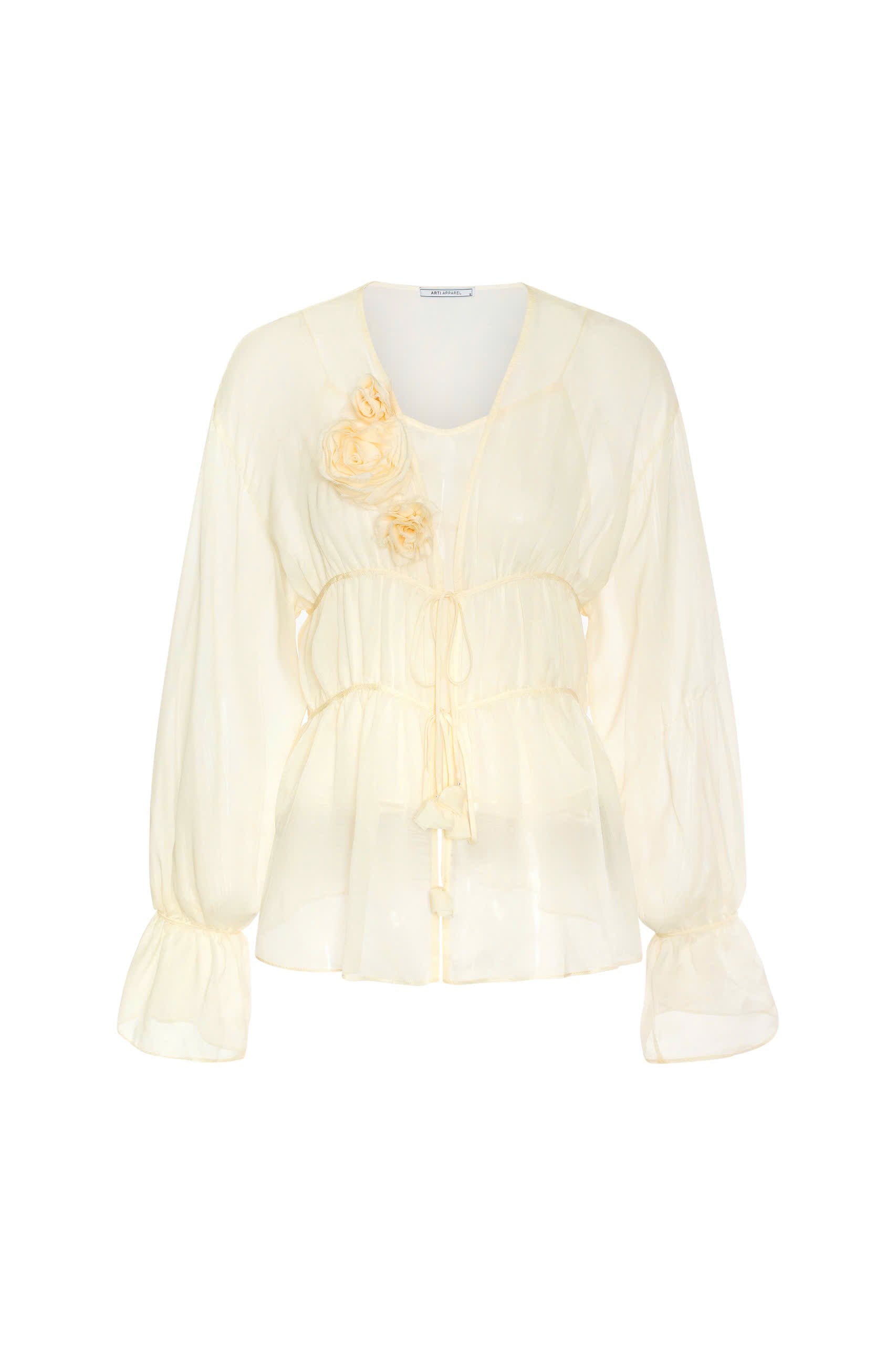 - مزينة بزخارف وردة مصنوعة يدويًا للحصول على ملمس ناعم وكثيف كتفاصيل محورية