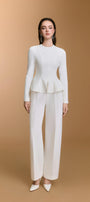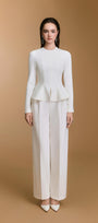 بلوزة أنيقة بتصميم ببلوم مموج، مصممة بقصة ضيقة، مصنوعة من النيوبرين المرن مع لمسة من المرونة لتوفير الراحة مع الحفاظ على شكلها. يُبرز التصميم الخصر، ليمنحكِ إطلالة أنثوية وعصرية. مناسبة للمناسبات الرسمية، واجتماعات العمل، والمناسبات المهنية.